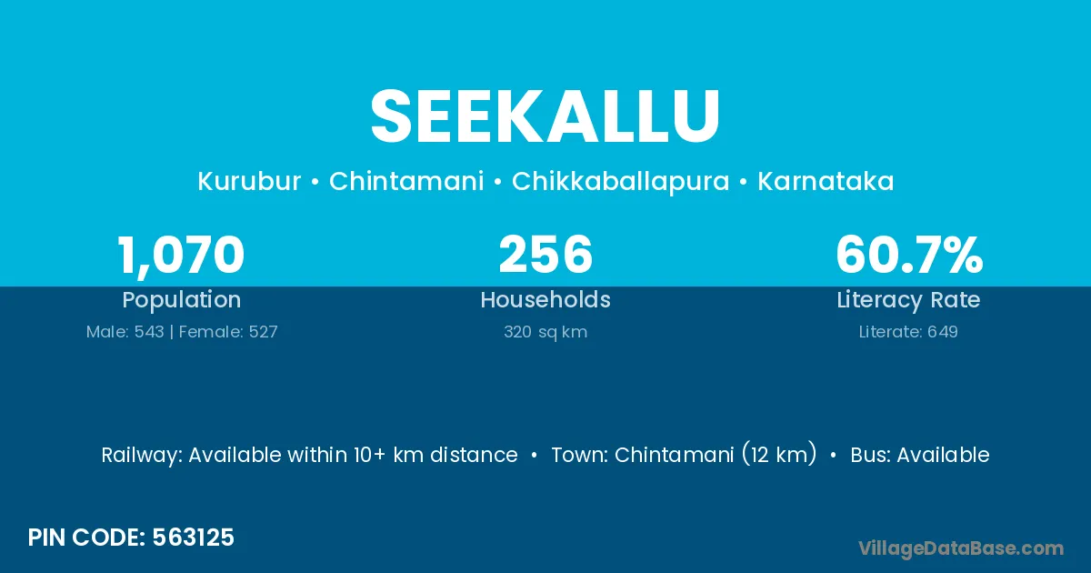 Chintamani (12 km) is the nearest town to Seekallu village for major economic activities and is located approximately 12 km away.
