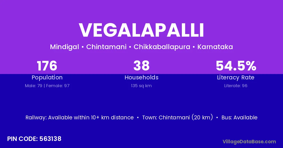 Chintamani (20 km) is the nearest town to Vegalapalli village for major economic activities and is located approximately 20 km away.