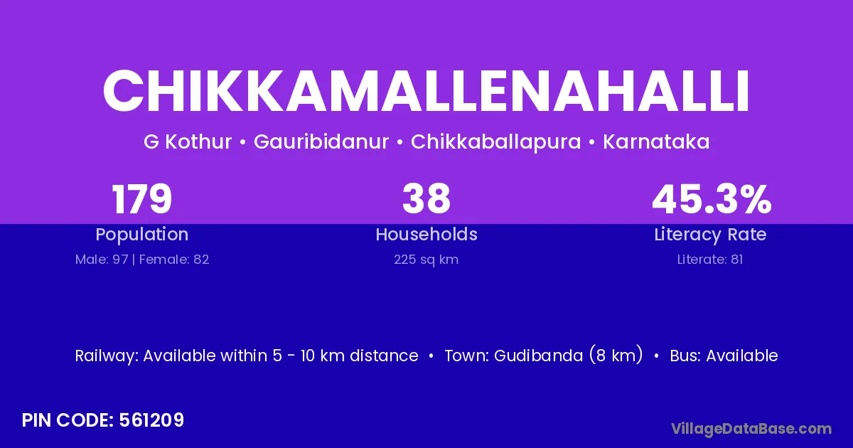 Gudibanda (8 km) is the nearest town to Chikkamallenahalli village for major economic activities and is located approximately 8 km away.