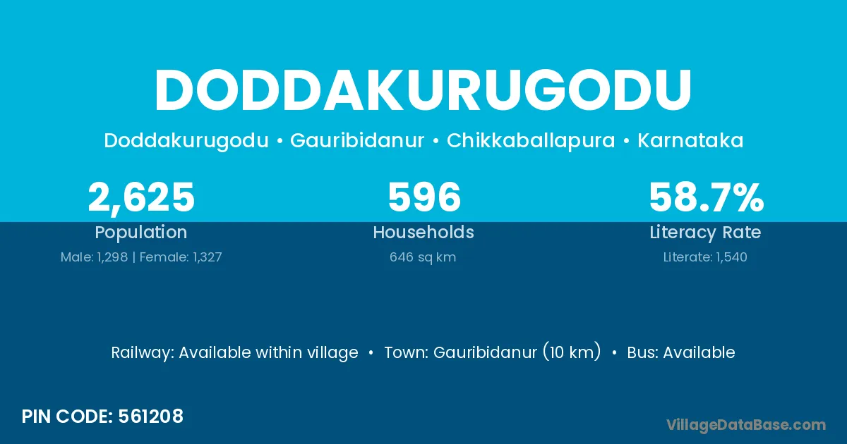 Gauribidanur (10 km) is the nearest town to Doddakurugodu village for major economic activities and is located approximately 10 km away.