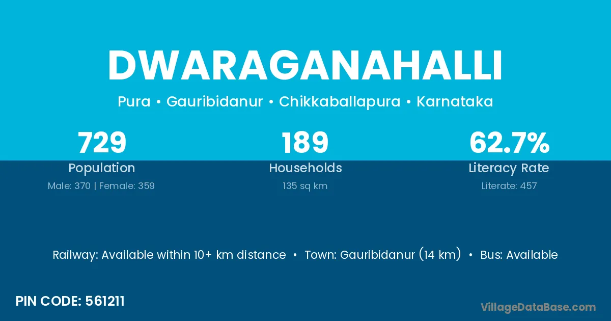 Gauribidanur (14 km) is the nearest town to Dwaraganahalli village for major economic activities and is located approximately 14 km away.