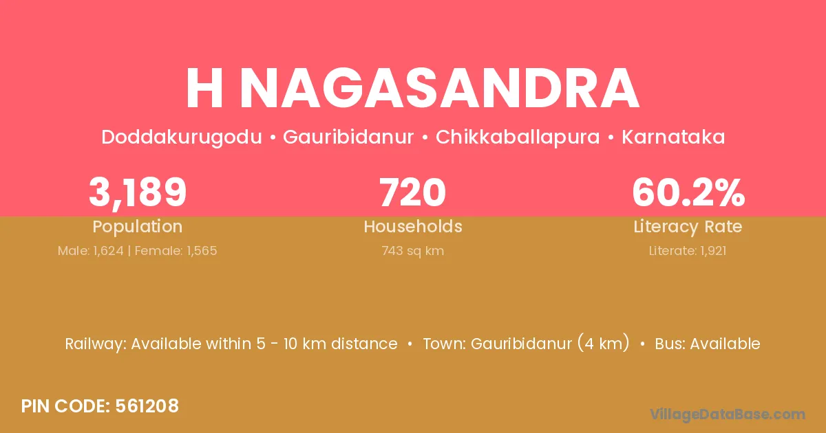 Gauribidanur (4 km) is the nearest town to H Nagasandra village for major economic activities and is located approximately 4 km away.