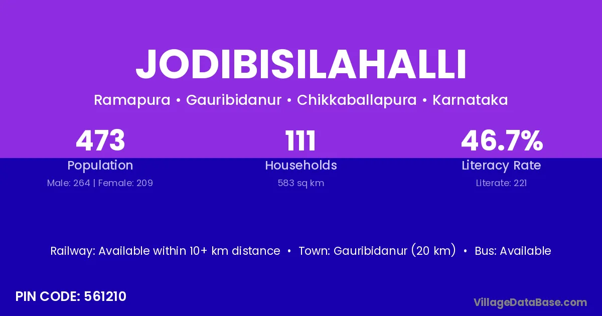 Gauribidanur (20 km) is the nearest town to Jodibisilahalli village for major economic activities and is located approximately 20 km away.