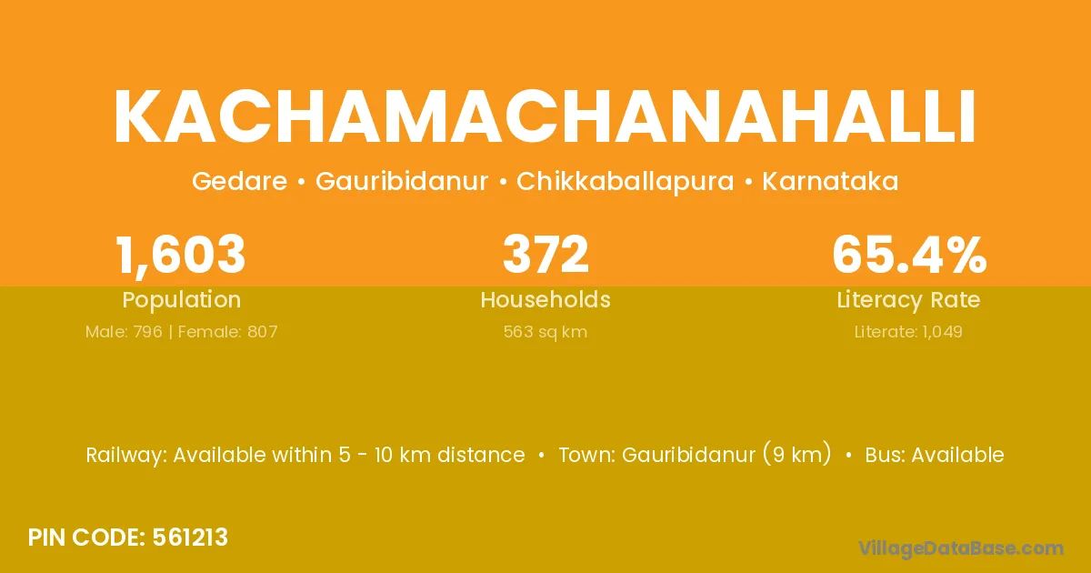 Kachamachanahalli village has a total population of 1,603 people, of which 796 are males and 807 are females.