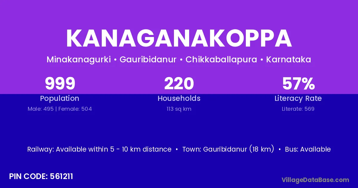 Gauribidanur (18 km) is the nearest town to Kanaganakoppa village for major economic activities and is located approximately 18 km away.