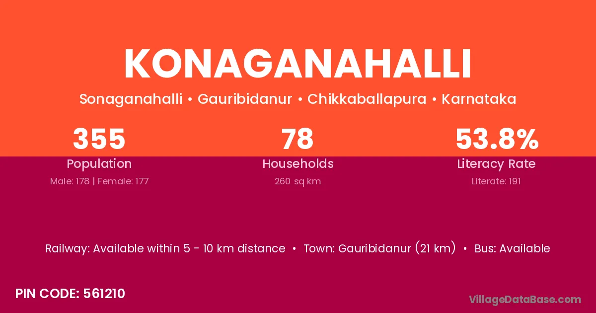 Gauribidanur (21 km) is the nearest town to Konaganahalli village for major economic activities and is located approximately 21 km away.