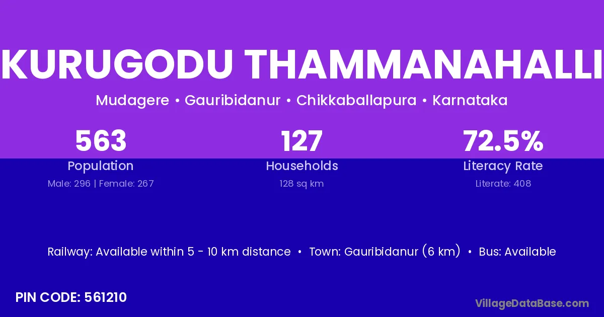 Kurugodu Thammanahalli village has a total population of 563 people, of which 296 are males and 267 are females.
