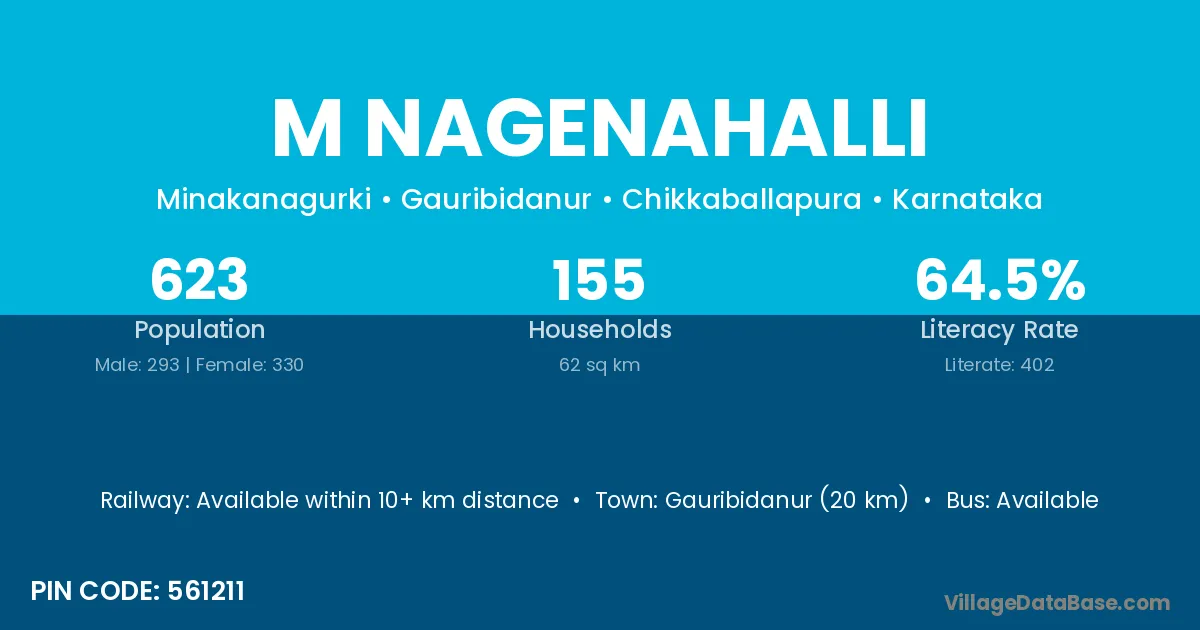 Gauribidanur (20 km) is the nearest town to M Nagenahalli village for major economic activities and is located approximately 20 km away.