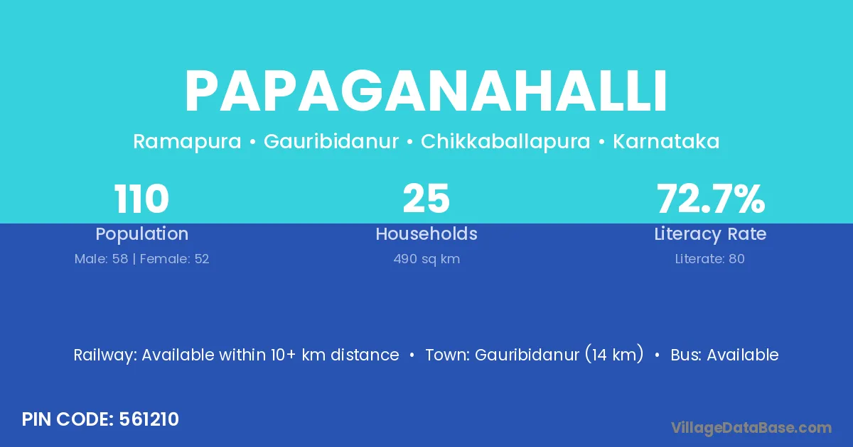 Papaganahalli village has a total population of 110 people, of which 58 are males and 52 are females.