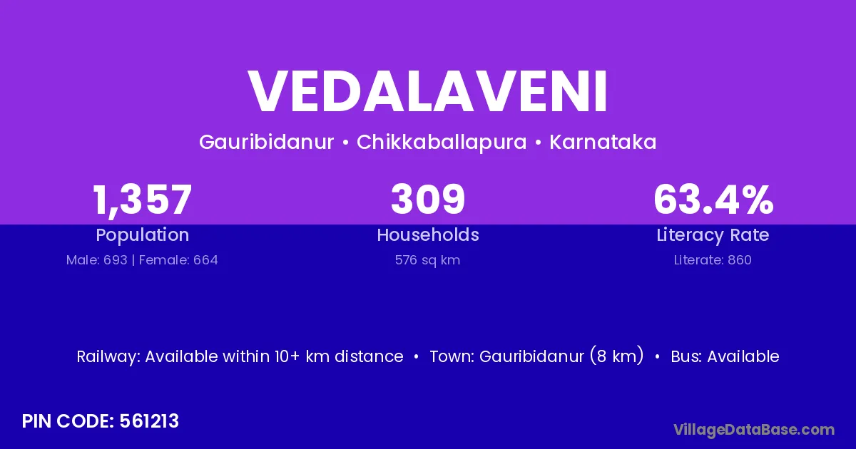 Gauribidanur (8 km) is the nearest town to Vedalaveni village for major economic activities and is located approximately 8 km away.