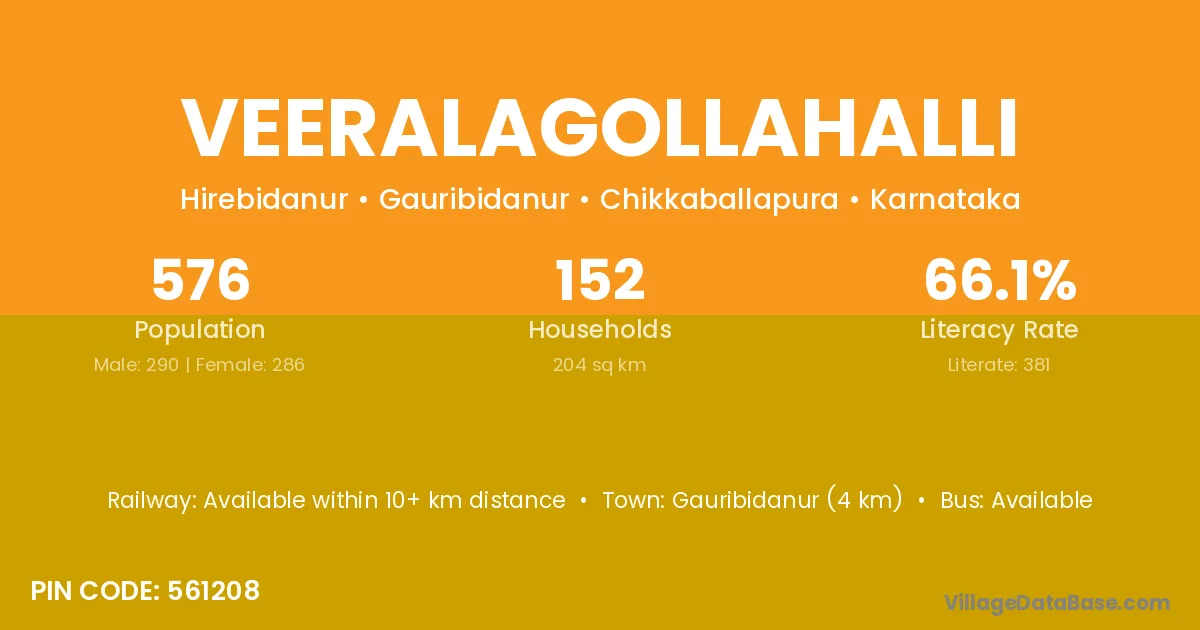 Gauribidanur (4 km) is the nearest town to Veeralagollahalli village for major economic activities and is located approximately 4 km away.