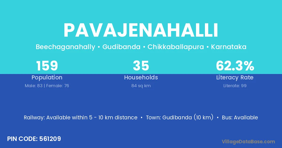 Gudibanda (10 km) is the nearest town to Pavajenahalli village for major economic activities and is located approximately 10 km away.