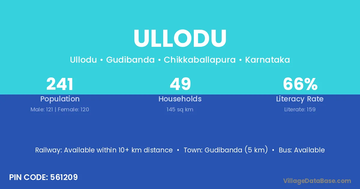 Gudibanda (5 km) is the nearest town to Ullodu village for major economic activities and is located approximately 5 km away.