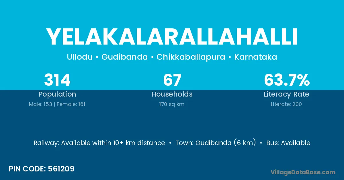Gudibanda (6 km) is the nearest town to Yelakalarallahalli village for major economic activities and is located approximately 6 km away.