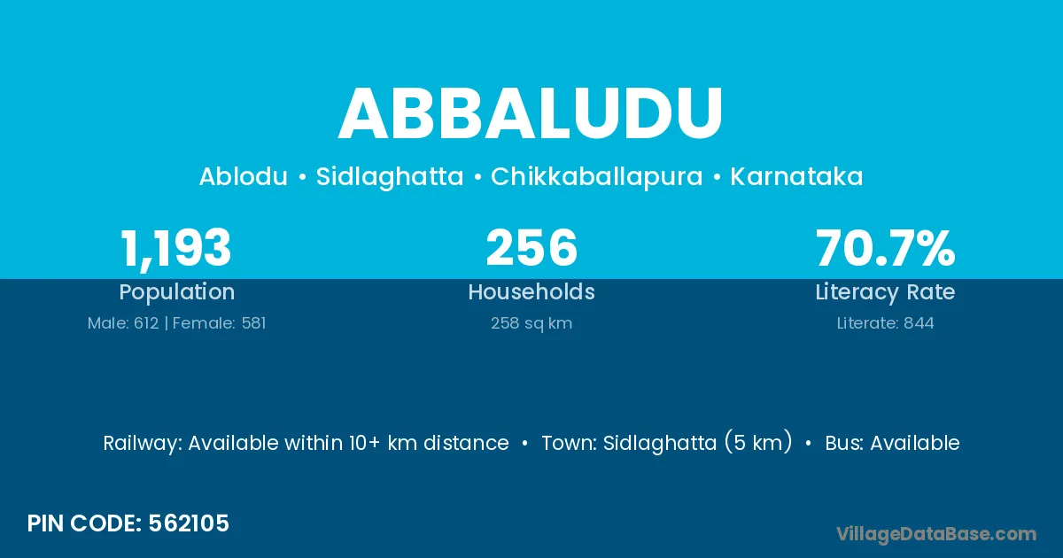 Sidlaghatta (5 km) is the nearest town to Abbaludu village for major economic activities and is located approximately 5 km away.