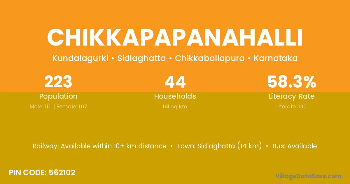 Sidlaghatta (14 km) is the nearest town to Chikkapapanahalli village for major economic activities and is located approximately 14 km away.