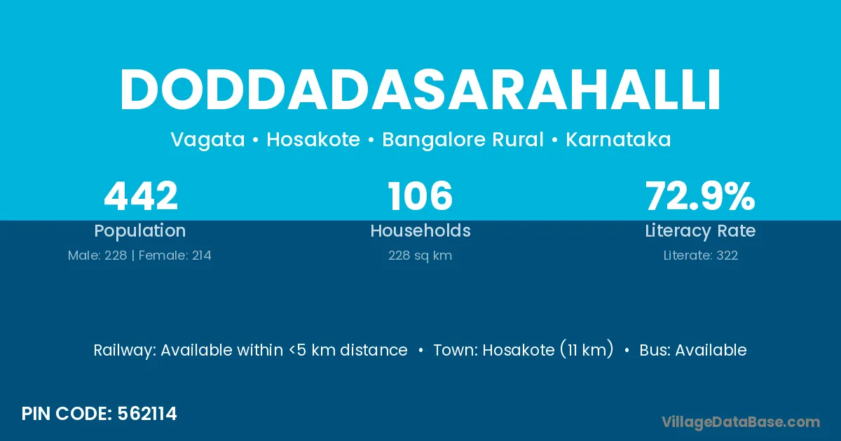 Sidlaghatta (5 km) is the nearest town to Doddadasarahalli village for major economic activities and is located approximately 5 km away.