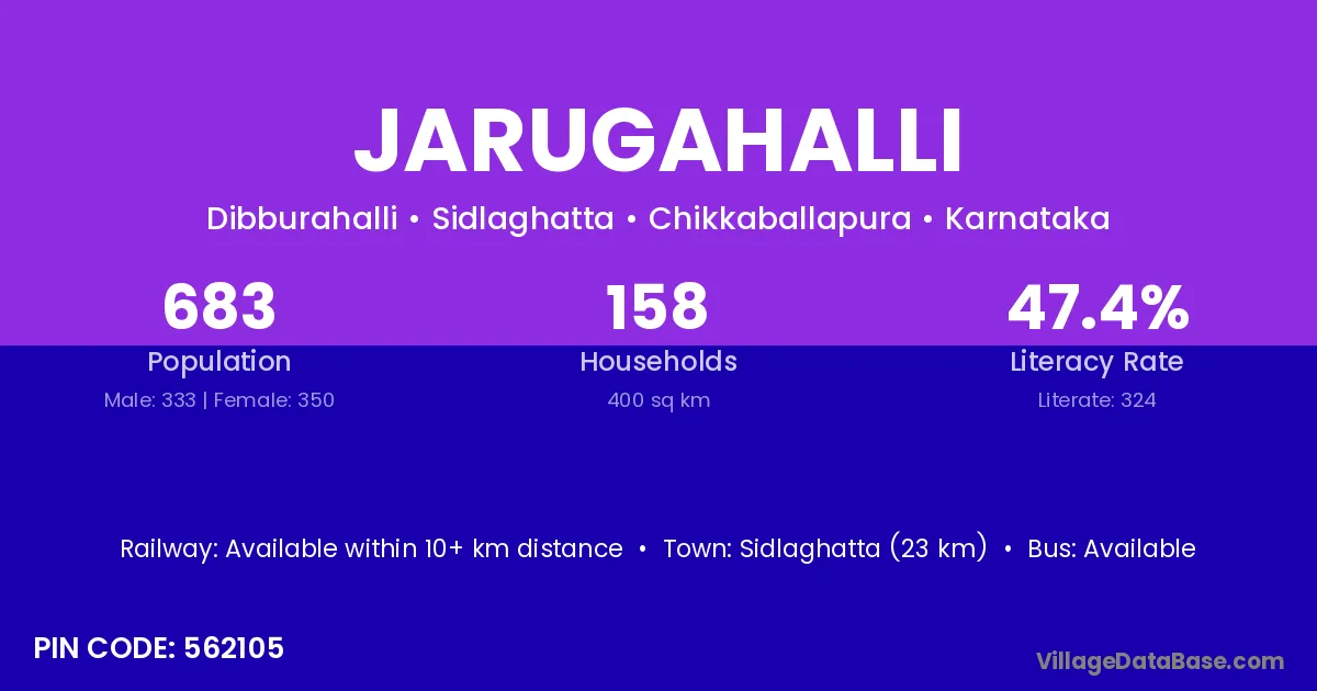 Sidlaghatta (23 km) is the nearest town to Jarugahalli village for major economic activities and is located approximately 23 km away.
