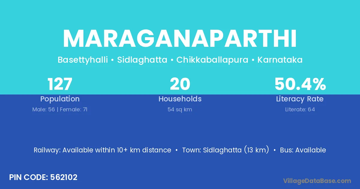 Sidlaghatta (13 km) is the nearest town to Maraganaparthi village for major economic activities and is located approximately 13 km away.