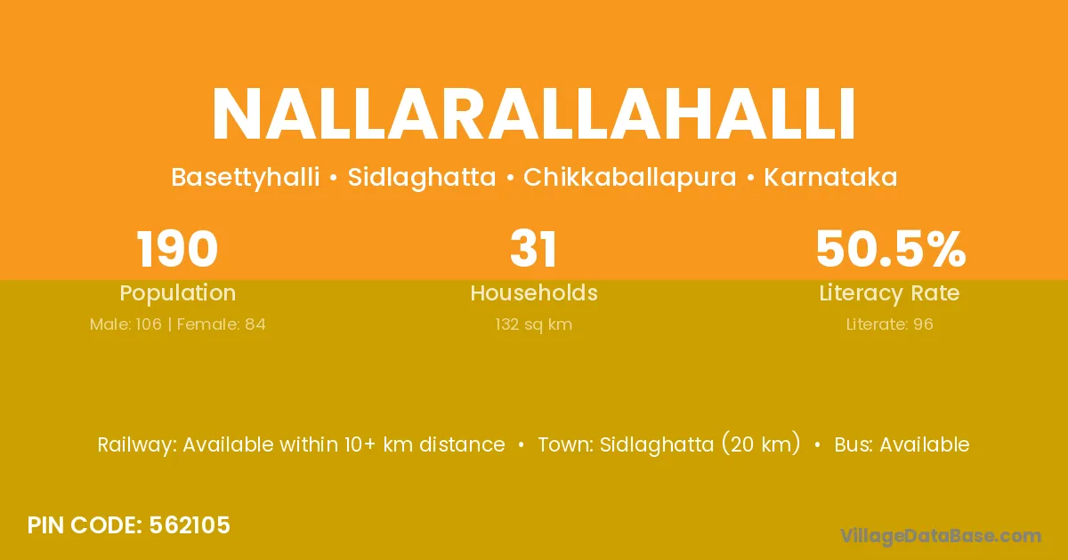 Sidlaghatta (20 km) is the nearest town to Nallarallahalli village for major economic activities and is located approximately 20 km away.