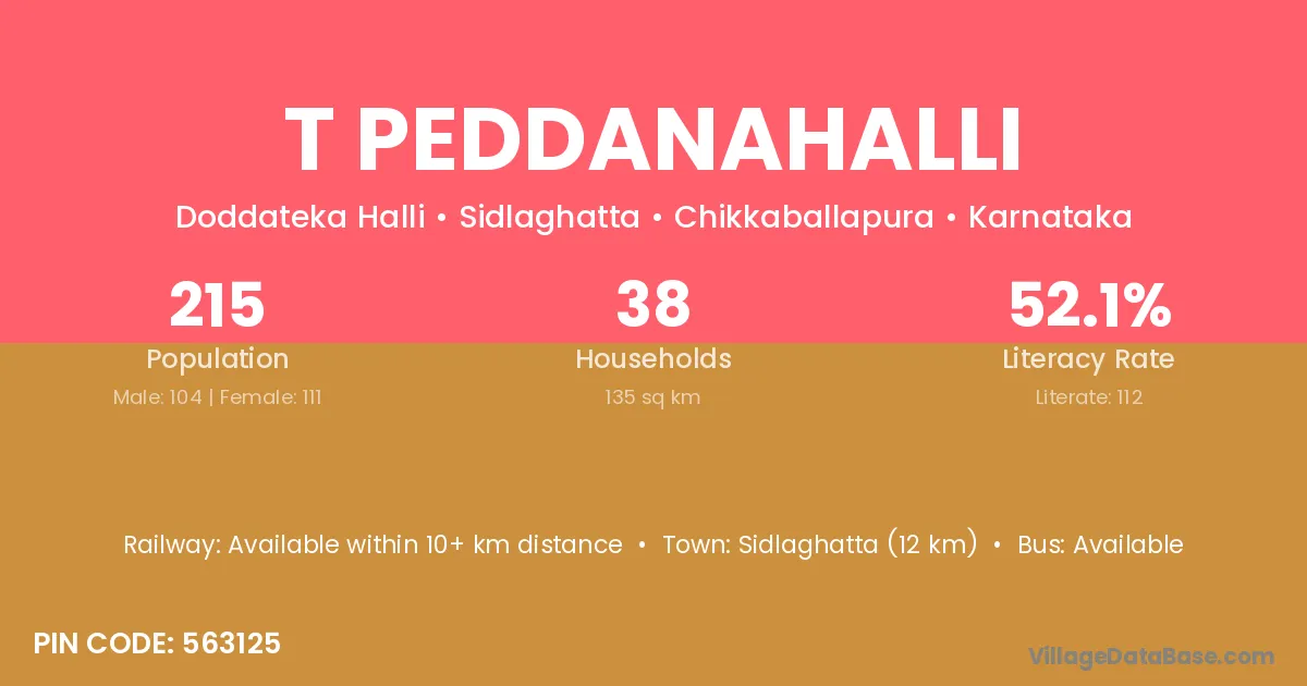 T Peddanahalli village has a total population of 215 people, of which 104 are males and 111 are females.