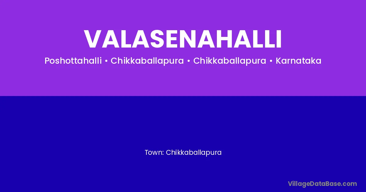 Sidlaghatta (19 km) is the nearest town to Valasenahalli village for major economic activities and is located approximately 19 km away.