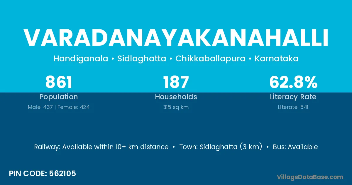Sidlaghatta (3 km) is the nearest town to Varadanayakanahalli village for major economic activities and is located approximately 3 km away.