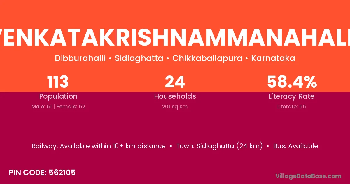 Sidlaghatta (24 km) is the nearest town to Venkatakrishnammanahalli village for major economic activities and is located approximately 24 km away.