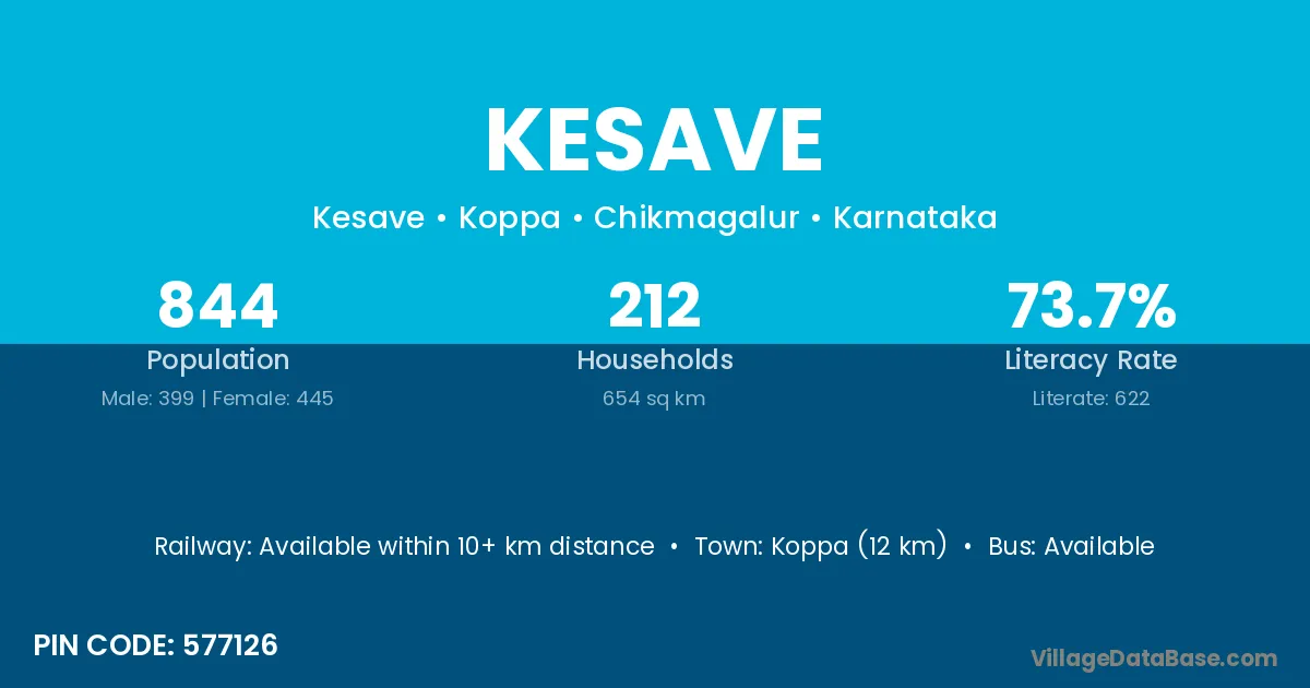 Chikmagalur (30 km) is the nearest town to Kesave village for major economic activities and is located approximately 30 km away.