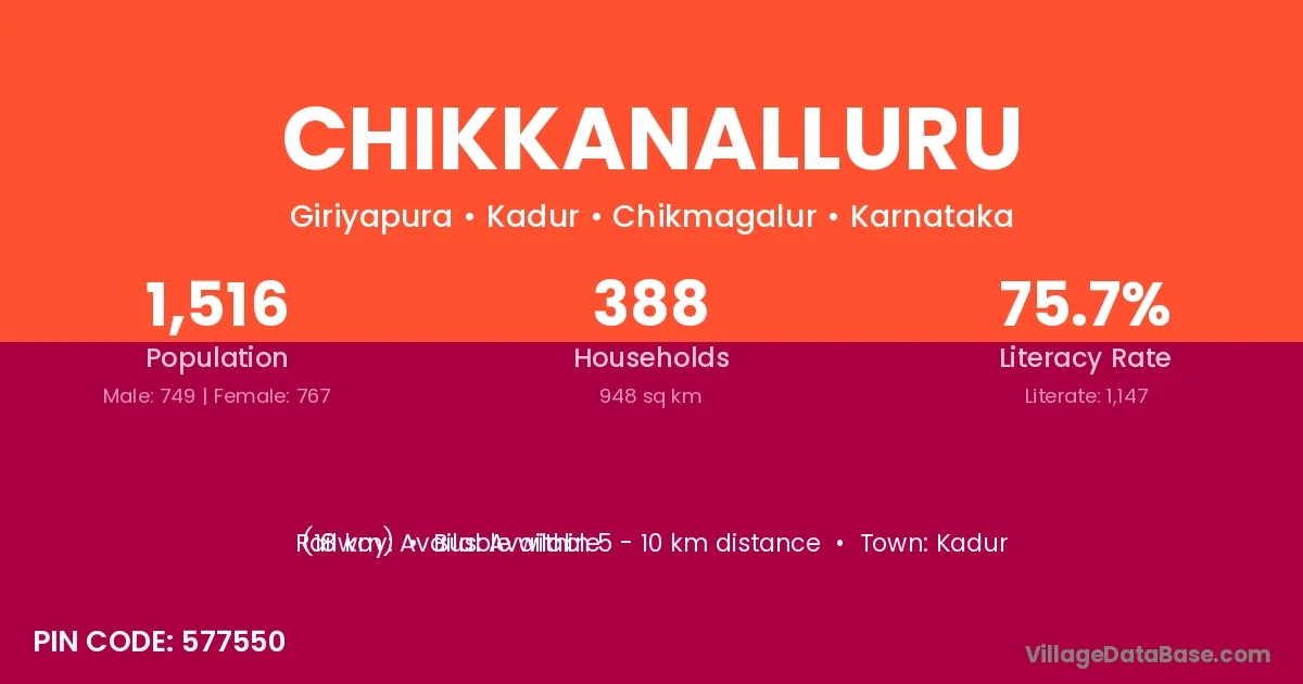 Chikkanalluru village has a total population of 1,516 people, of which 749 are males and 767 are females.