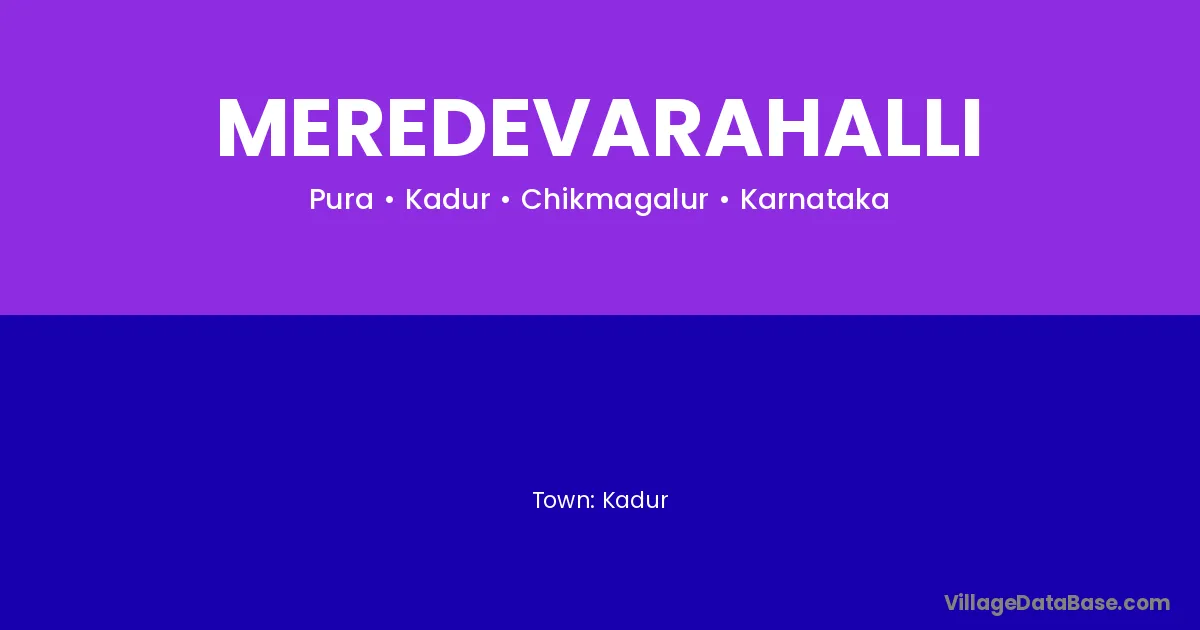 Kadur is the nearest town to Meredevarahalli village for major economic activities
