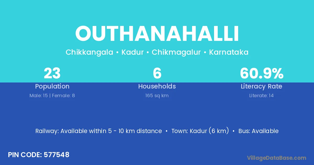 Outhanahalli village has a total population of 23 people, of which 15 are males and 8 are females.