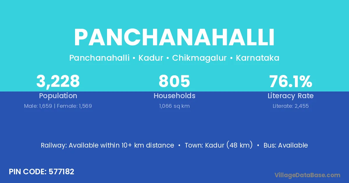 Kadur (48 km) is the nearest town to Panchanahalli village for major economic activities and is located approximately 48 km away.