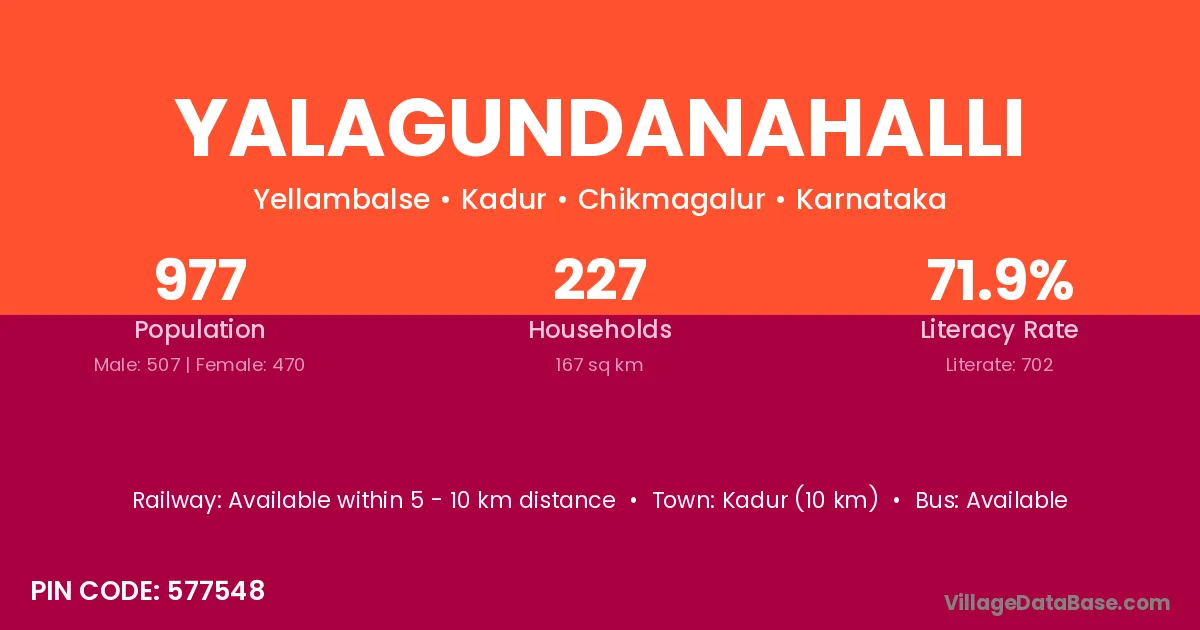 Yalagundanahalli village has a total population of 977 people, of which 507 are males and 470 are females.