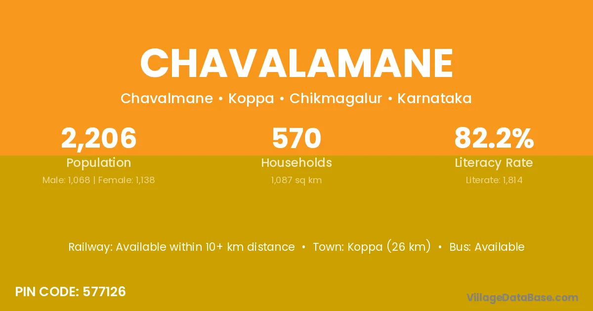 Koppa (26 km) is the nearest town to Chavalamane village for major economic activities and is located approximately 26 km away.