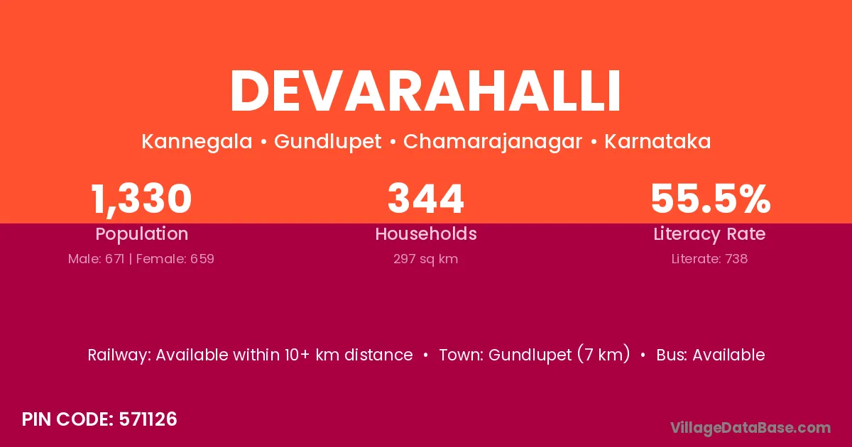 Koppa (28 km) is the nearest town to Devarahalli village for major economic activities and is located approximately 28 km away.