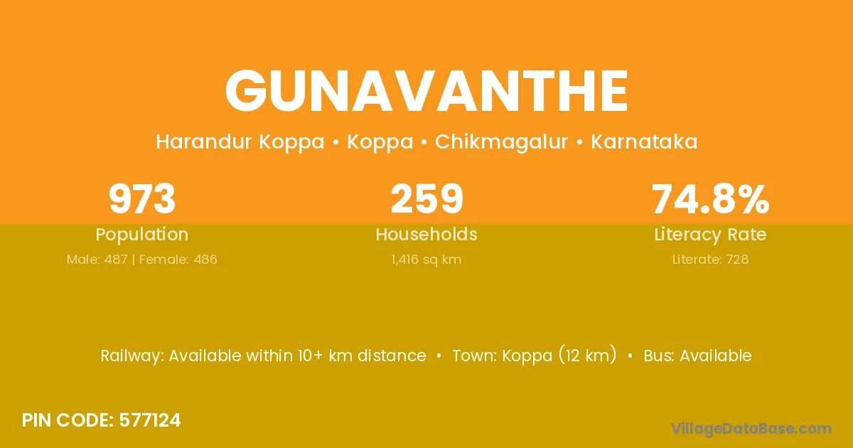 Koppa (12 km) is the nearest town to Gunavanthe village for major economic activities and is located approximately 12 km away.
