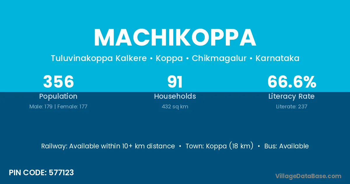 Koppa (18 km) is the nearest town to Machikoppa village for major economic activities and is located approximately 18 km away.