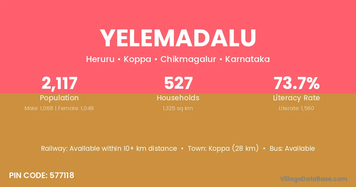 Koppa (28 km) is the nearest town to Yelemadalu village for major economic activities and is located approximately 28 km away.