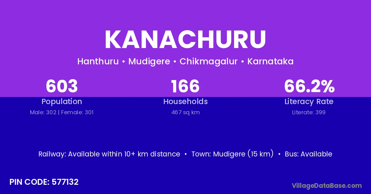 Mudigere (15 km) is the nearest town to Kanachuru village for major economic activities and is located approximately 15 km away.