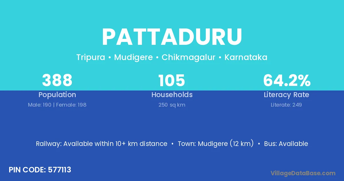 Mudigere (12 km) is the nearest town to Pattaduru village for major economic activities and is located approximately 12 km away.