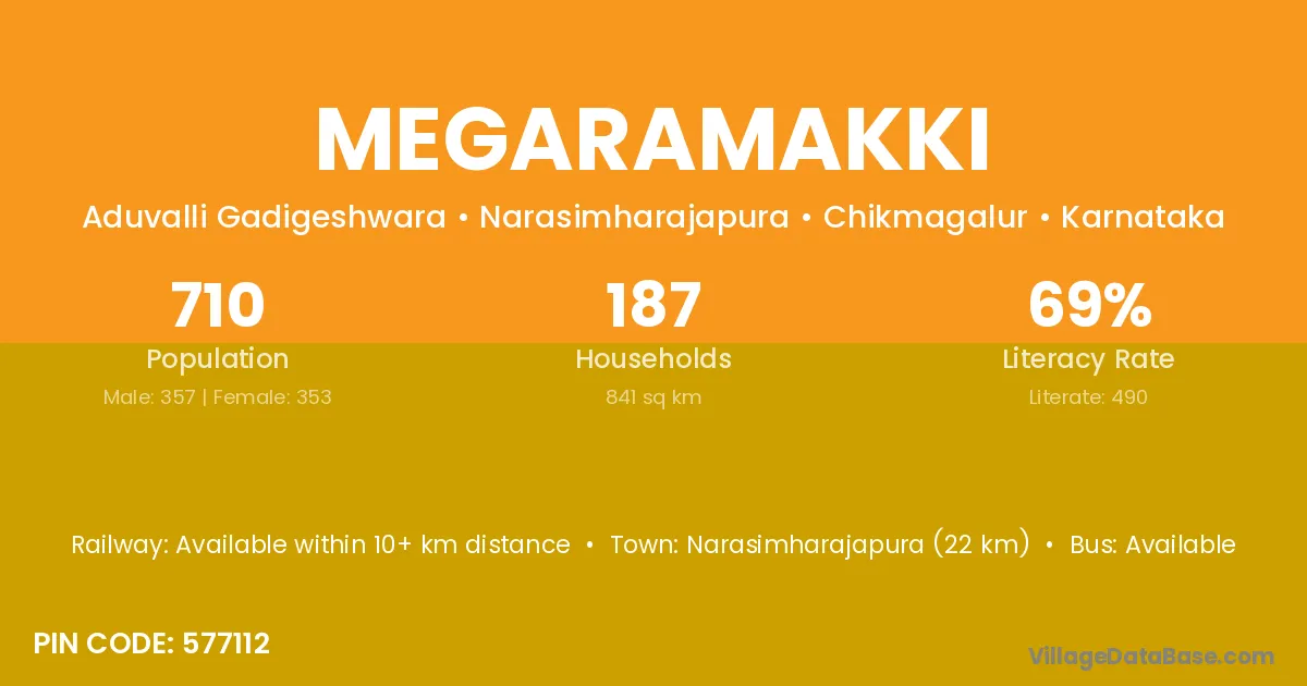Megaramakki village has a total population of 710 people, of which 357 are males and 353 are females.