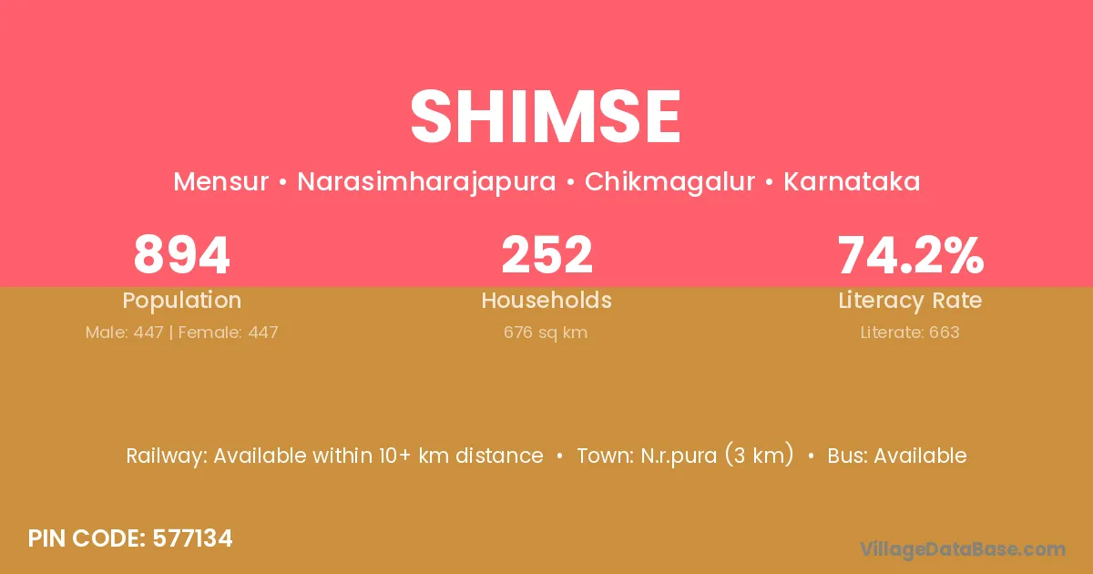 According to Census 2011 information, the village code of Shimse village is 577134.