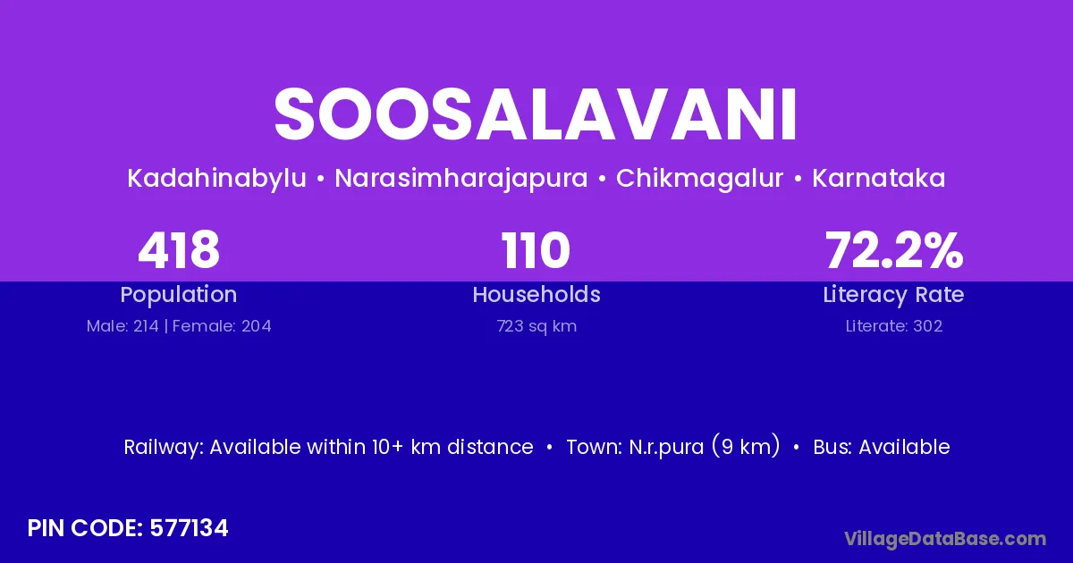 Soosalavani village has a total population of 418 people, of which 214 are males and 204 are females.