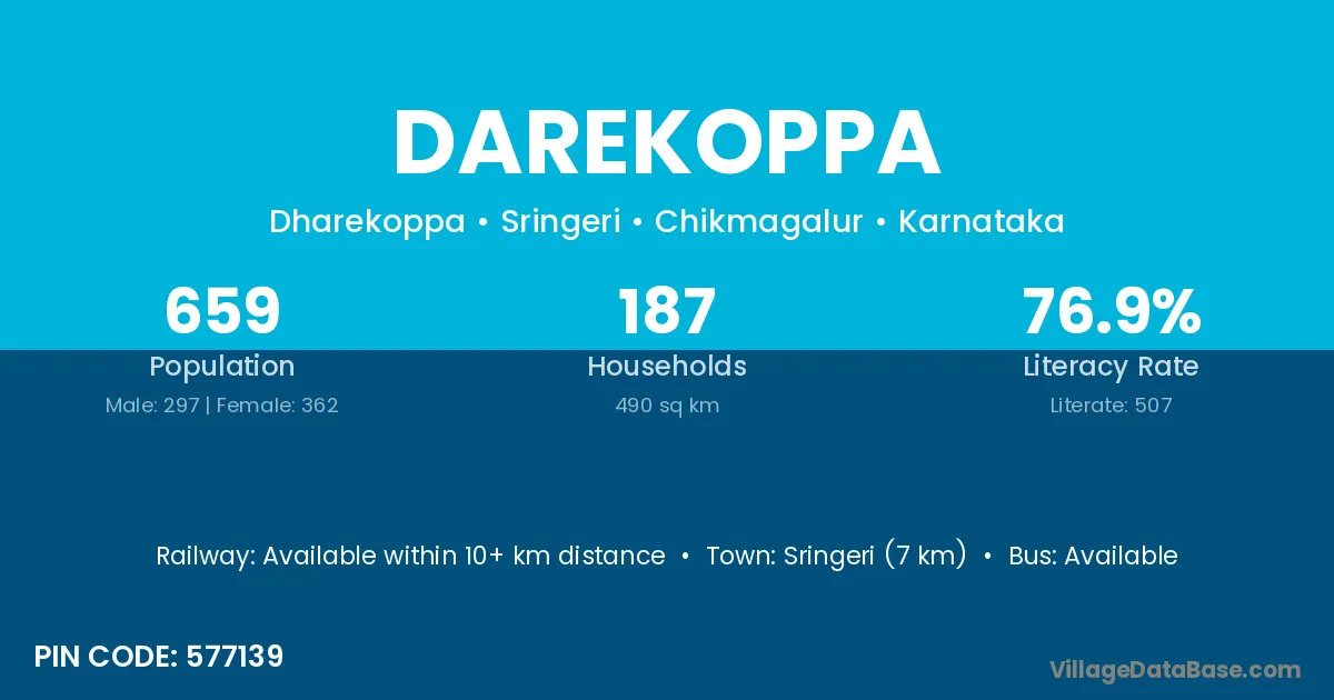 Sringeri (7 km) is the nearest town to Darekoppa village for major economic activities and is located approximately 7 km away.