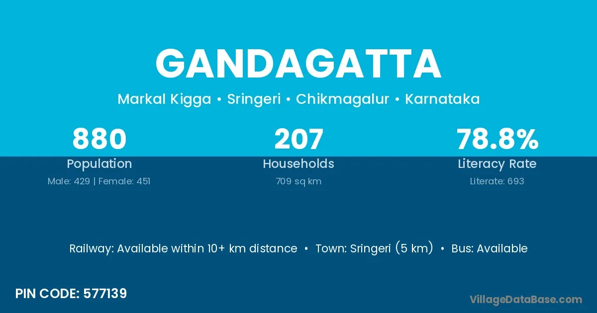 Sringeri (5 km) is the nearest town to Gandagatta village for major economic activities and is located approximately 5 km away.