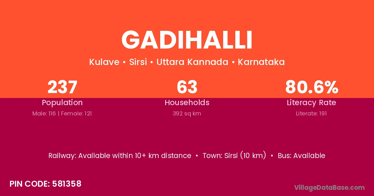 Hosdurga (10 km) is the nearest town to Gadihalli village for major economic activities and is located approximately 10 km away.
