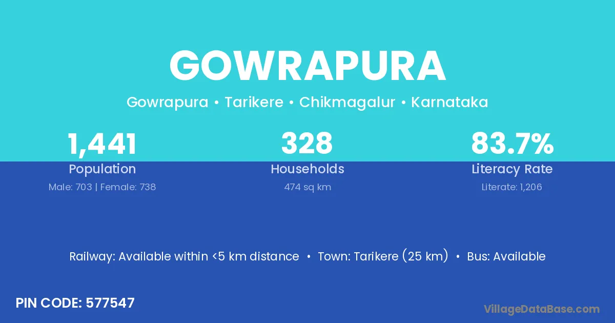 Tarikere (25 km) is the nearest town to Gowrapura village for major economic activities and is located approximately 25 km away.