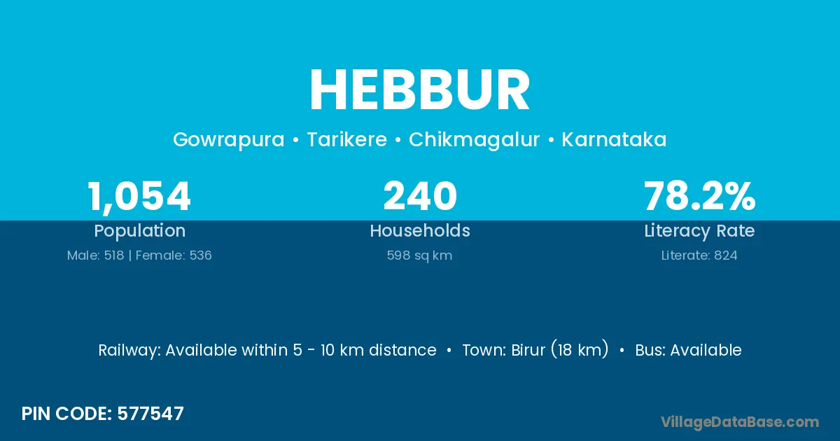 Birur (18 km) is the nearest town to Hebbur village for major economic activities and is located approximately 18 km away.