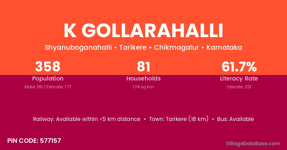 K Gollarahalli village has a total population of 358 people, of which 181 are males and 177 are females.